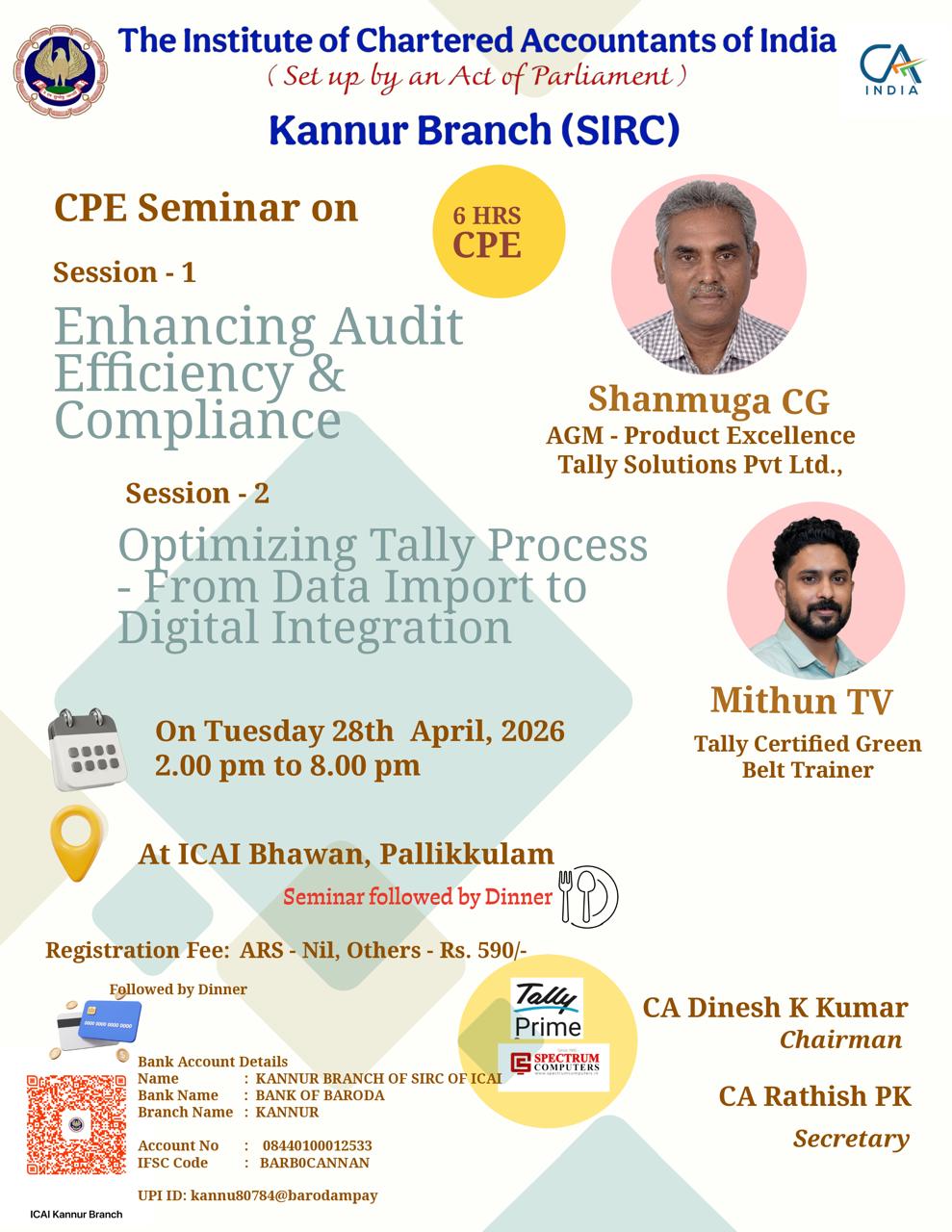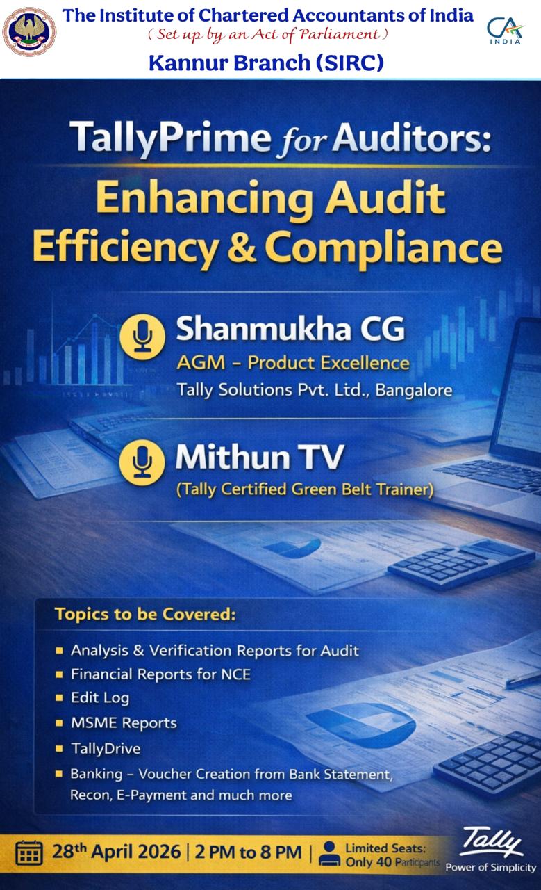 The Institute of Chartered Accountants of India (ICAI) is a statutory organisation formed by an Act of Parliament, namely the Chartered Accountants Act, 1949 (Act No. XXXVIII of 1949), to regulate and develop the profession of Chartered Accountants in India. The Kannur Branch of the ICAI is focused on its regulatory and developmental function, which establishes the highest professional and ethical standards for its members in the Kannur district. The unit strives to enhance facilities accessible for education, training, continual knowledge updating, and research and development.